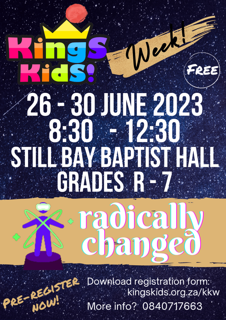 King’s Kids Week KKW is hierdie jaar van 26 – 30 Junie! Sien jou daar Laai registrasie vorm hier af: children-registration-form-2023-1Download HISTORY: KKW 2022 Die tema vir 2022 was “God is in Beheer” Share this: Click to share on X (Opens in new window) X Click to share on Facebook (Opens in new window) Facebook Like Loading...